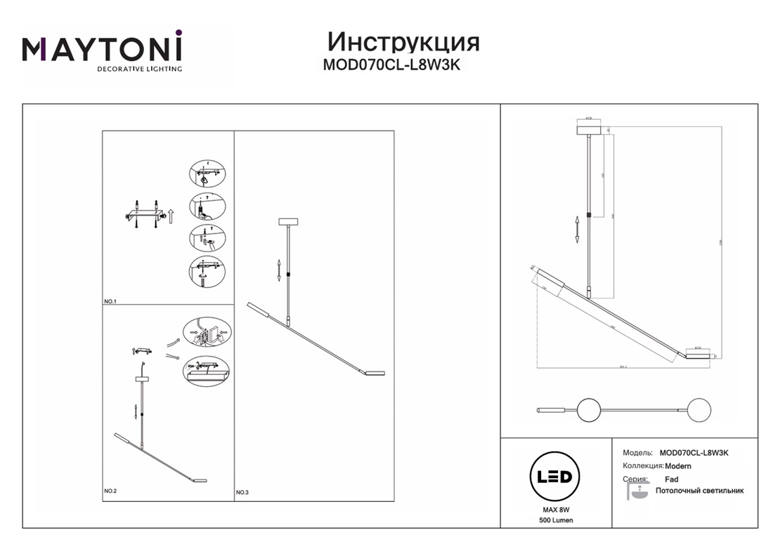 Данную модель MOD070CL-L8W3K с быстрой доставкой спешите купить по цене 11 779 ₽ в магазине 220svet.ru