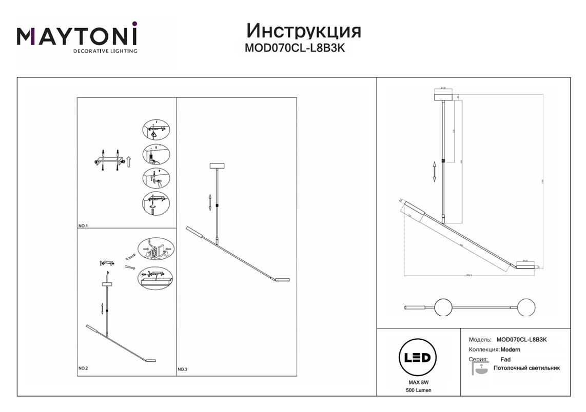 Данную модель MOD070CL-L8B3K с быстрой доставкой спешите купить по цене 16 990 ₽ в магазине 220svet.ru