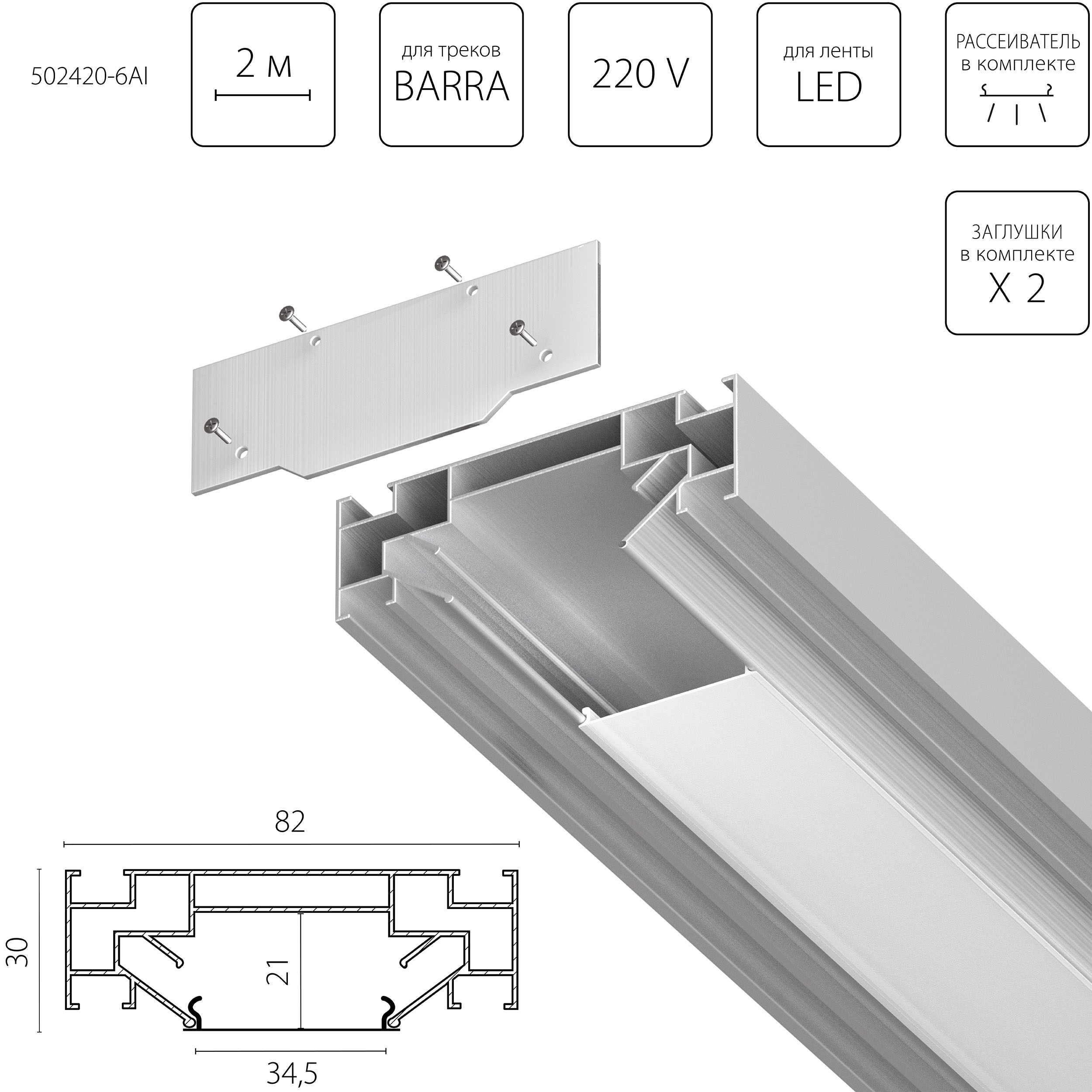 Профиль встраиваемый в натяжной потолок под LED ленту Lightstar Barra Base 502420-6AI в Краснодаре