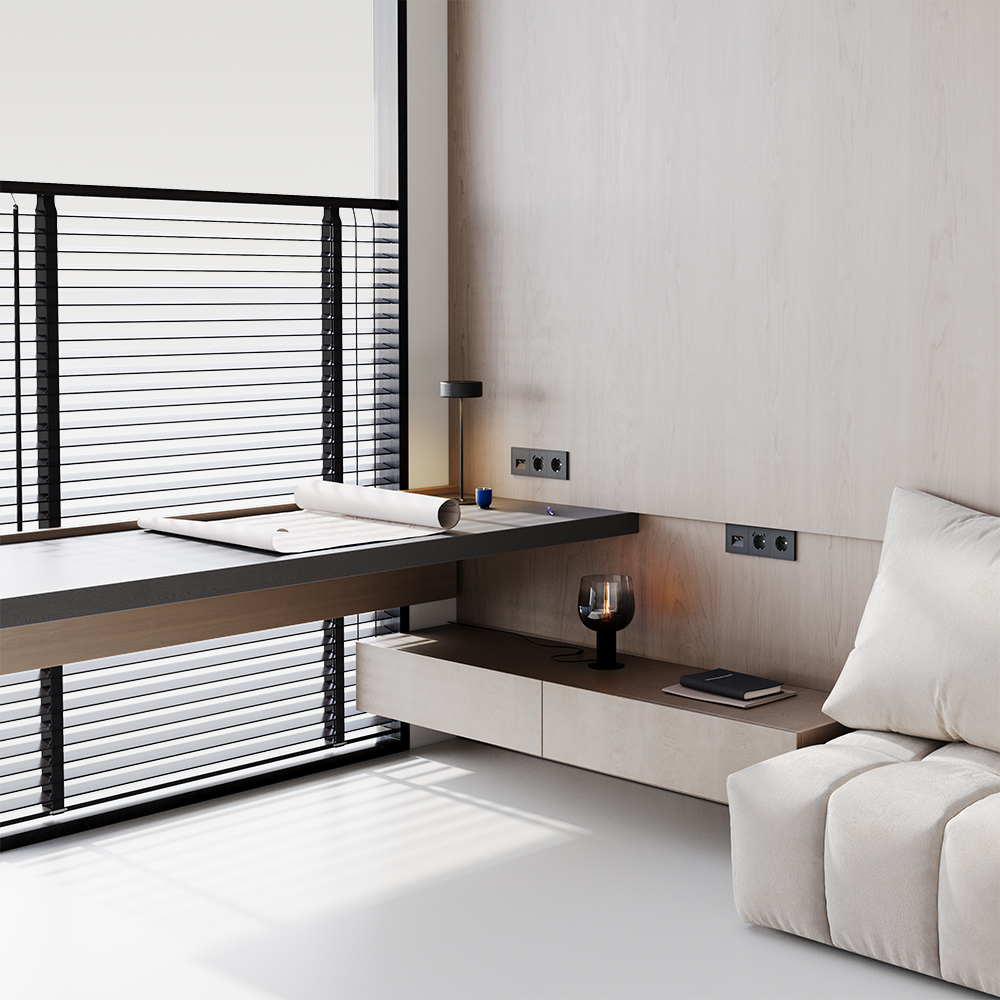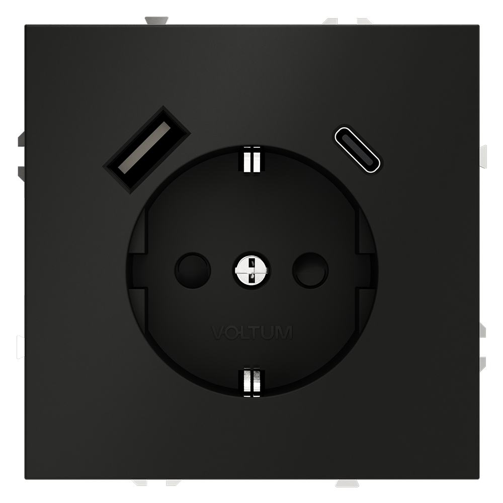 Купить "Розетка встраиваемая с заземлением и защитными шторками, 16А, с USB, A+С Voltum S70 VLS040508 (черный матовый"