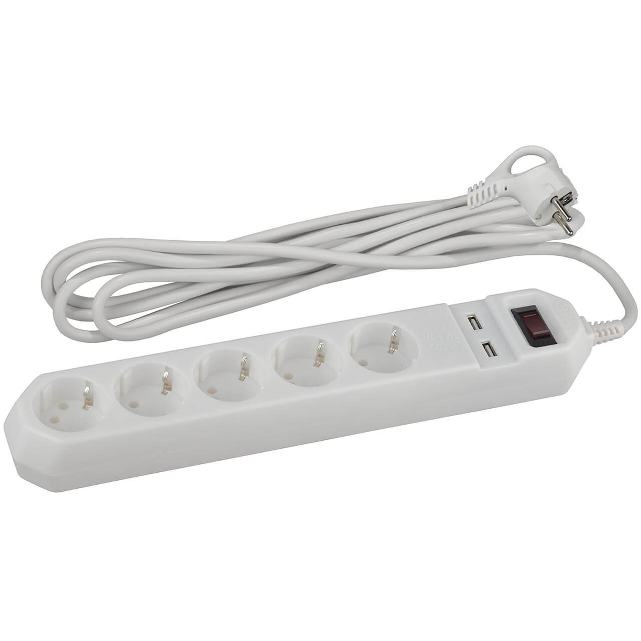 Купить "Сетевой фильтр ЭРА USF-5es-1.5m-USB-W Б0019037"