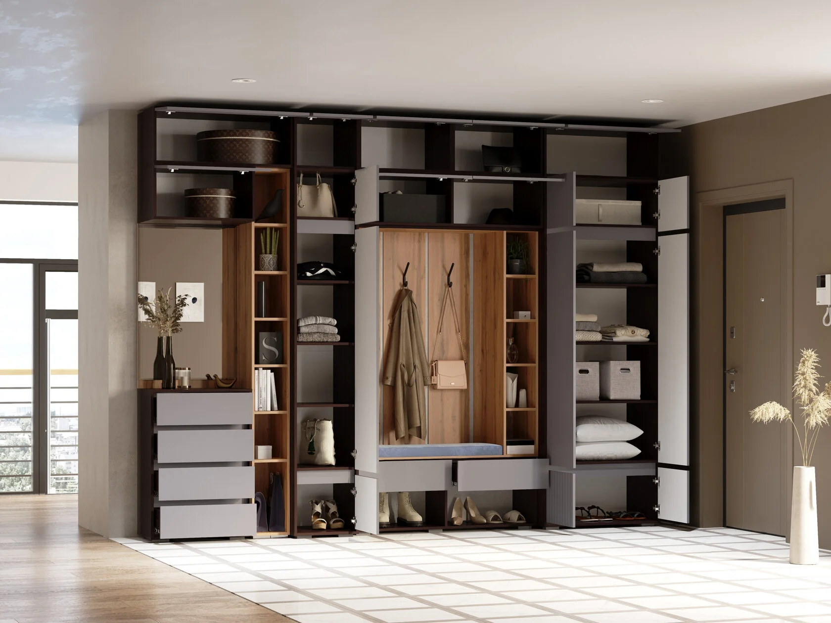 Шкаф двухстворчатый Woodville Роут венге / графит софт 593729 в Краснодаре