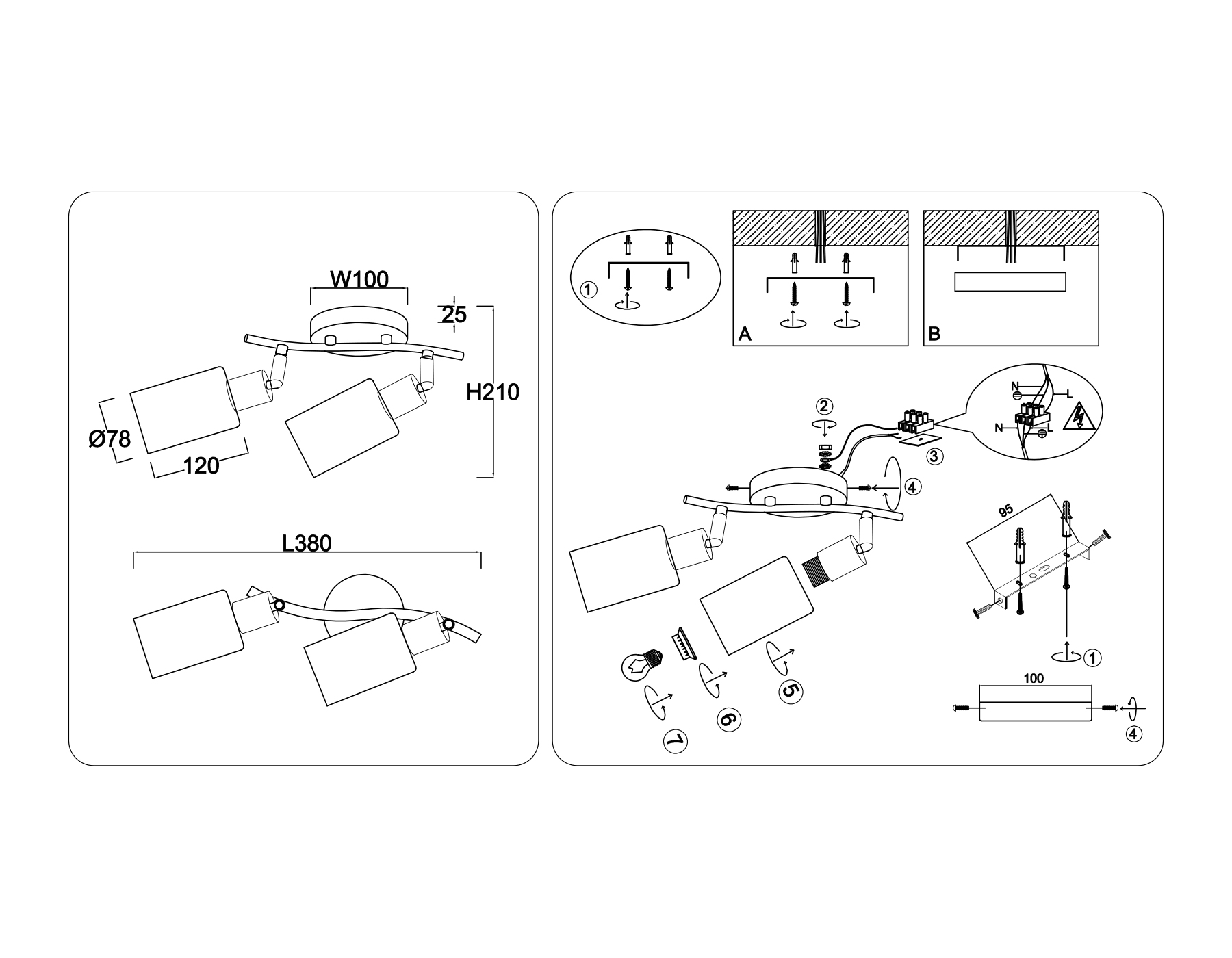 - Количество плафонов: 2