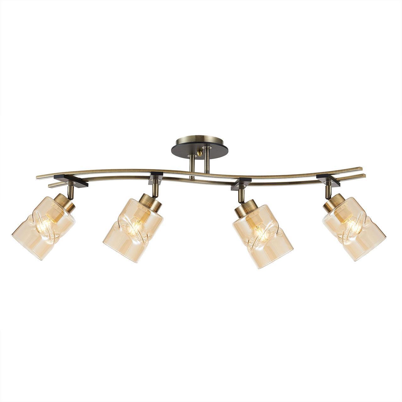 Спот на штанге, потолочный бронзового, прозрачного цвета. Модель CL142144, из коллекции Мерида от датского производителя Citilux. Светильник состоит из 4 плафонов, форма которых цилиндр, и выполнены они из стекла,  материал арматуры - Металл. Для данного светильника рекомендуется использовать лампочки Накаливания с цоколем E27 мощностью 75W.
