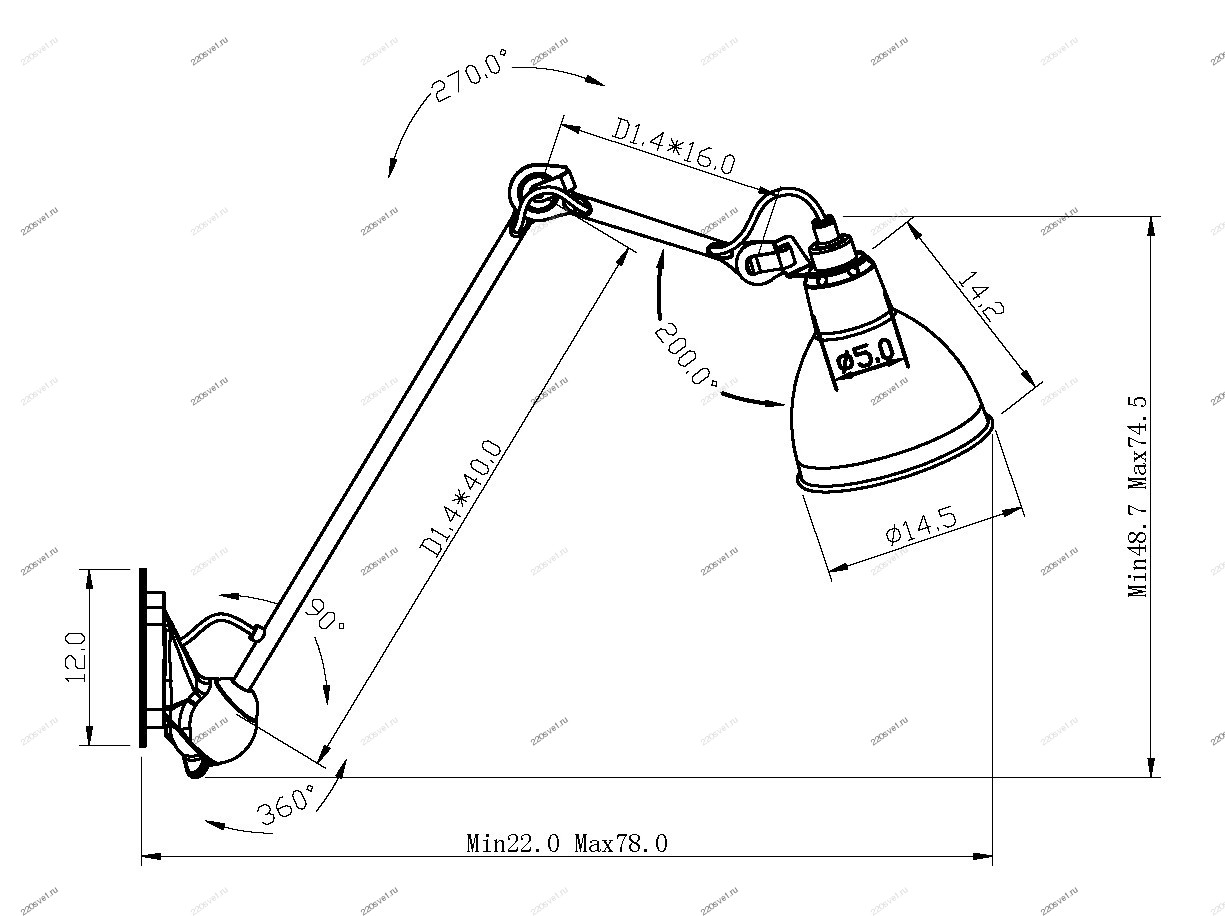 • Мощность лампы: 40 W