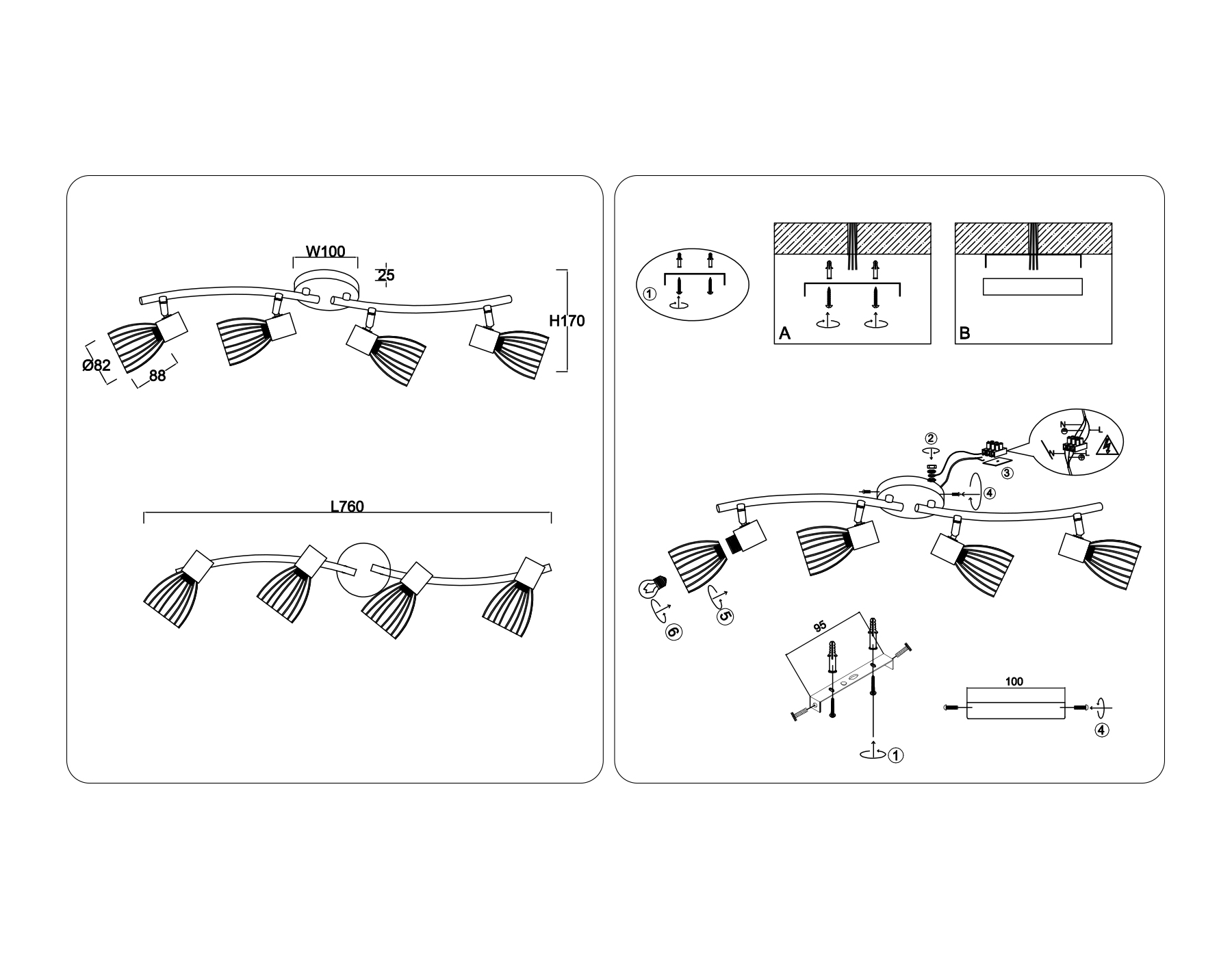 - Количество плафонов: 4