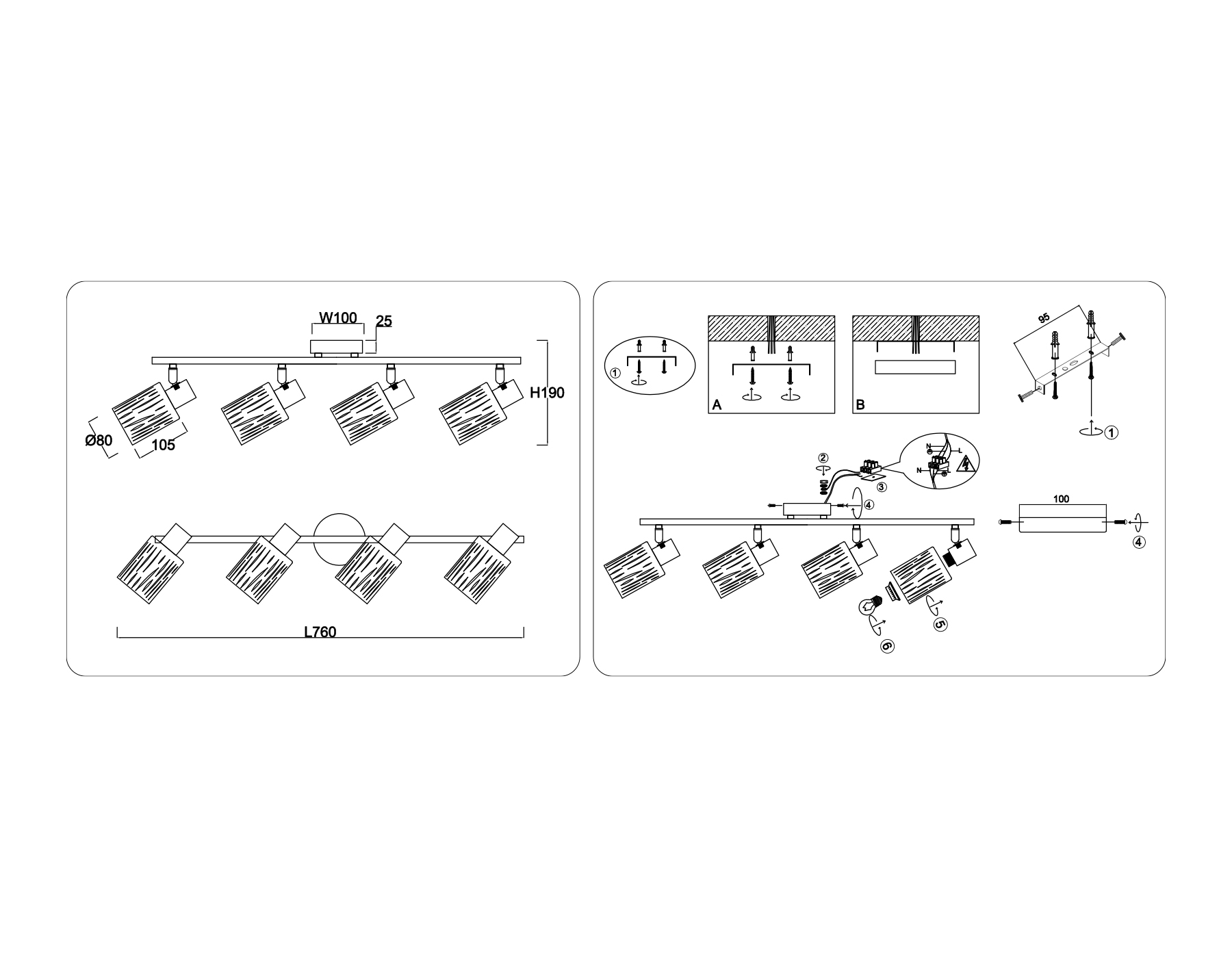 - Количество плафонов: 4