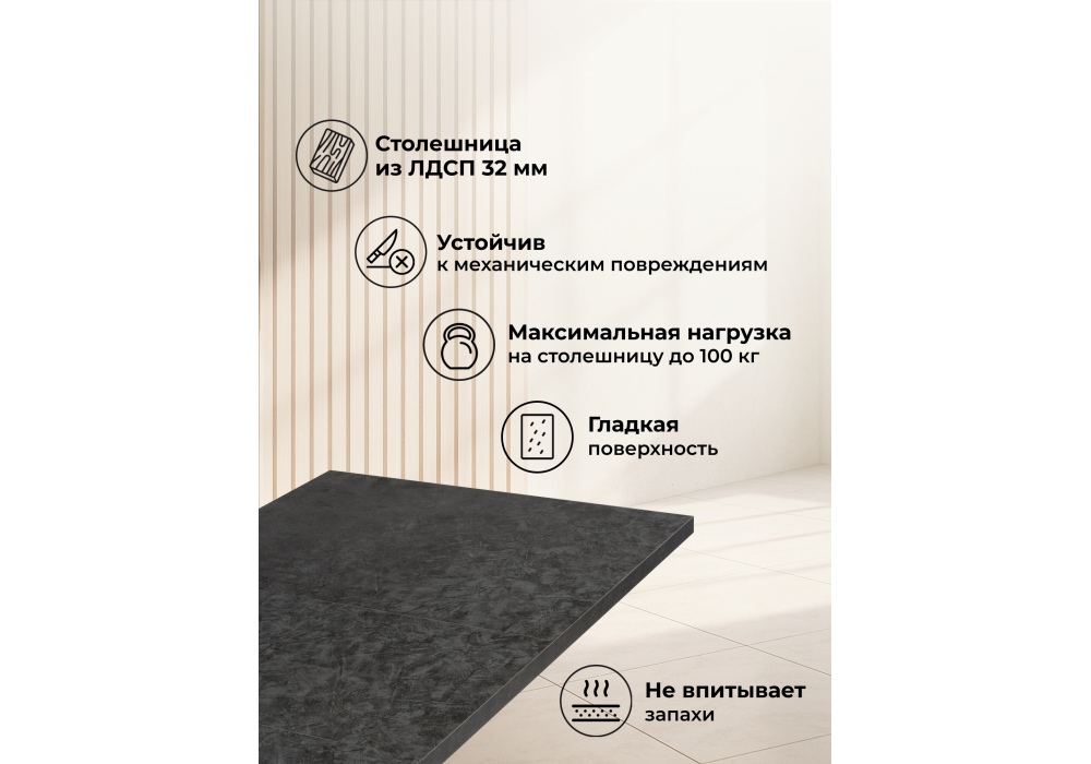 • Усиленная столешница 32 мм с устойчивостью к повреждениям