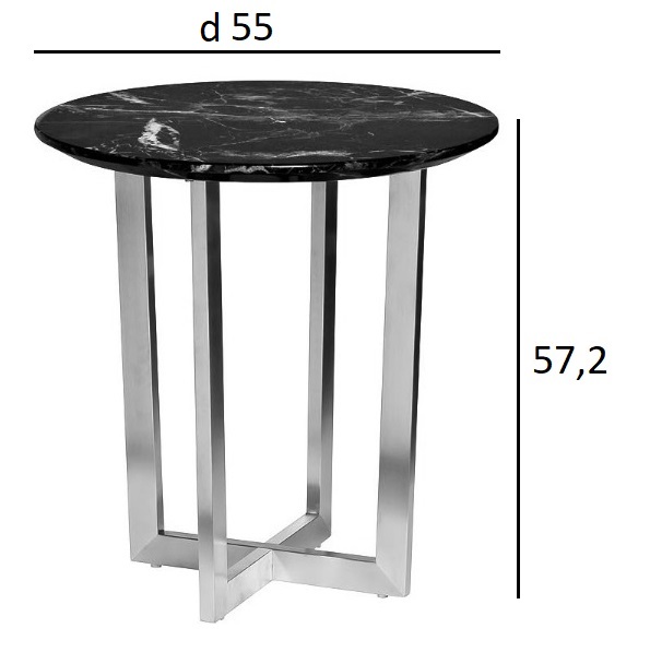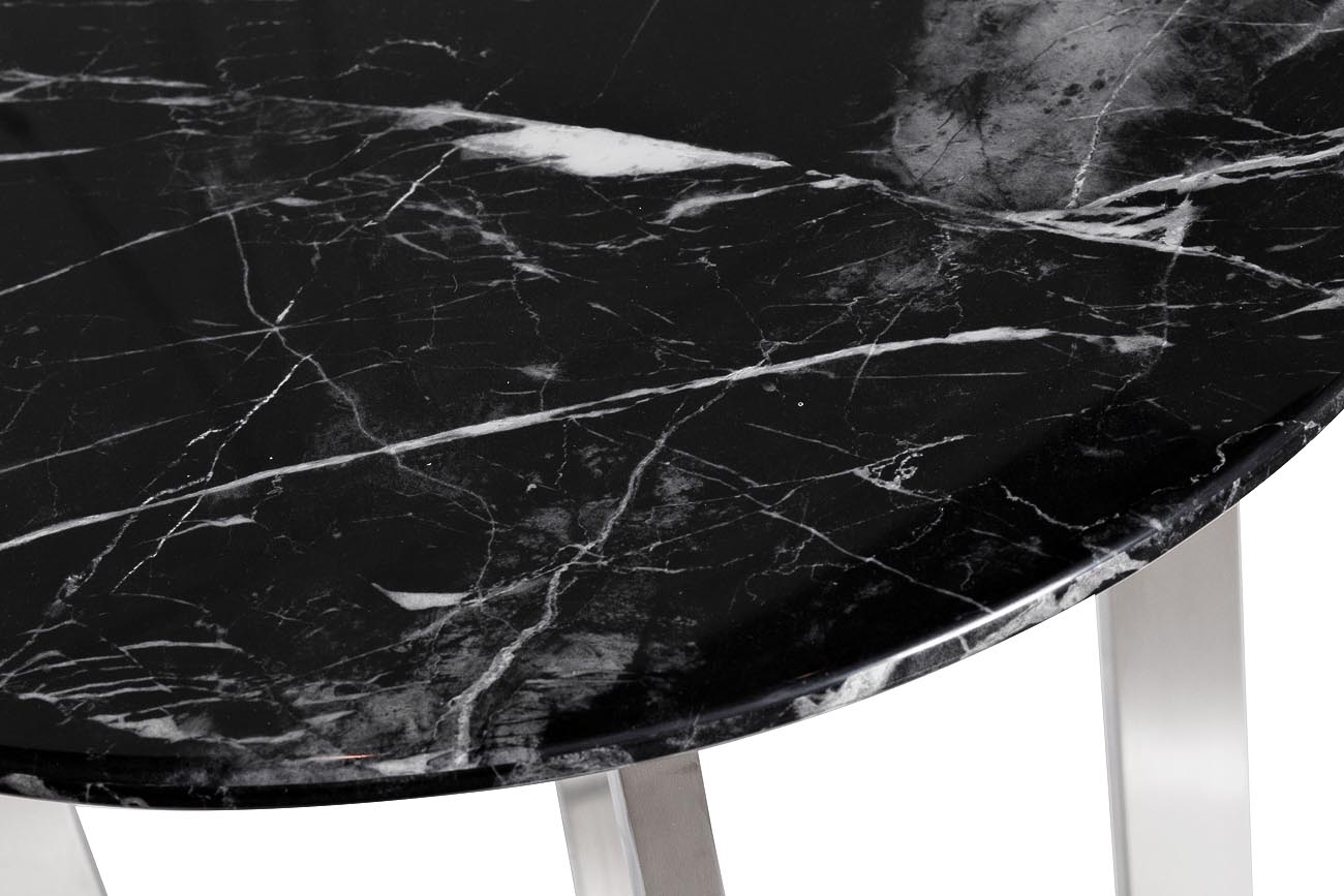 Изящный журнальный столик Nero 33FS-ET2029-BS со столешницей из МДФ с мраморным принтом черного цвета с белыми прожилками и основанием из нержавеющей стали цвета матовый хром будет уместен как в холле или прихожей, так и в гостиной комнате. На него можно ...