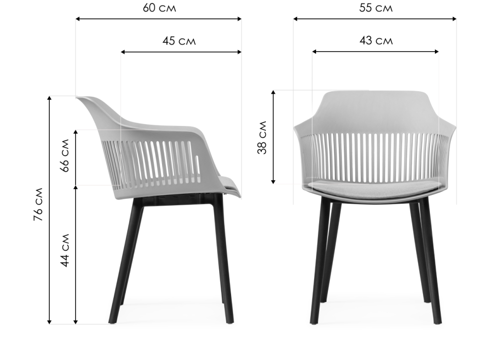 Высота подлокотников: 66 см. Материал каркаса - Пластик; Материал сиденья - Пластик / ткань рогожка; Материал ножек - Пластик; Материал обивки - Рогожка; Цвет каркаса - Черный; Цвет сиденья - Серый; Цвет ножек - Черный; Цвет обивки - Серый; Ширина - 55; Глубина - 60; Высота - 76; Ширина сиденья - 43; Глубина сиденья - 45; Высота сиденья - 44;