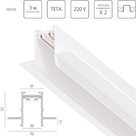 Шинопровод однофазный встраиваемый в ГКЛ Lightstar Teta Pro 505236