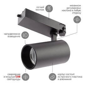 Трековый однофазный светодиодный светильник Arte Lamp Flash A4572PL-1BK