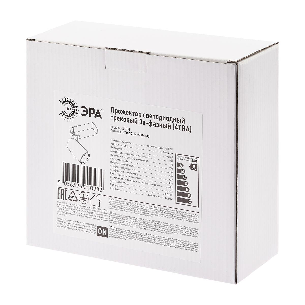 Купить "Трековый светодиодный светильник ЭРА SТR-30-36-40K-B30 Б0049766"