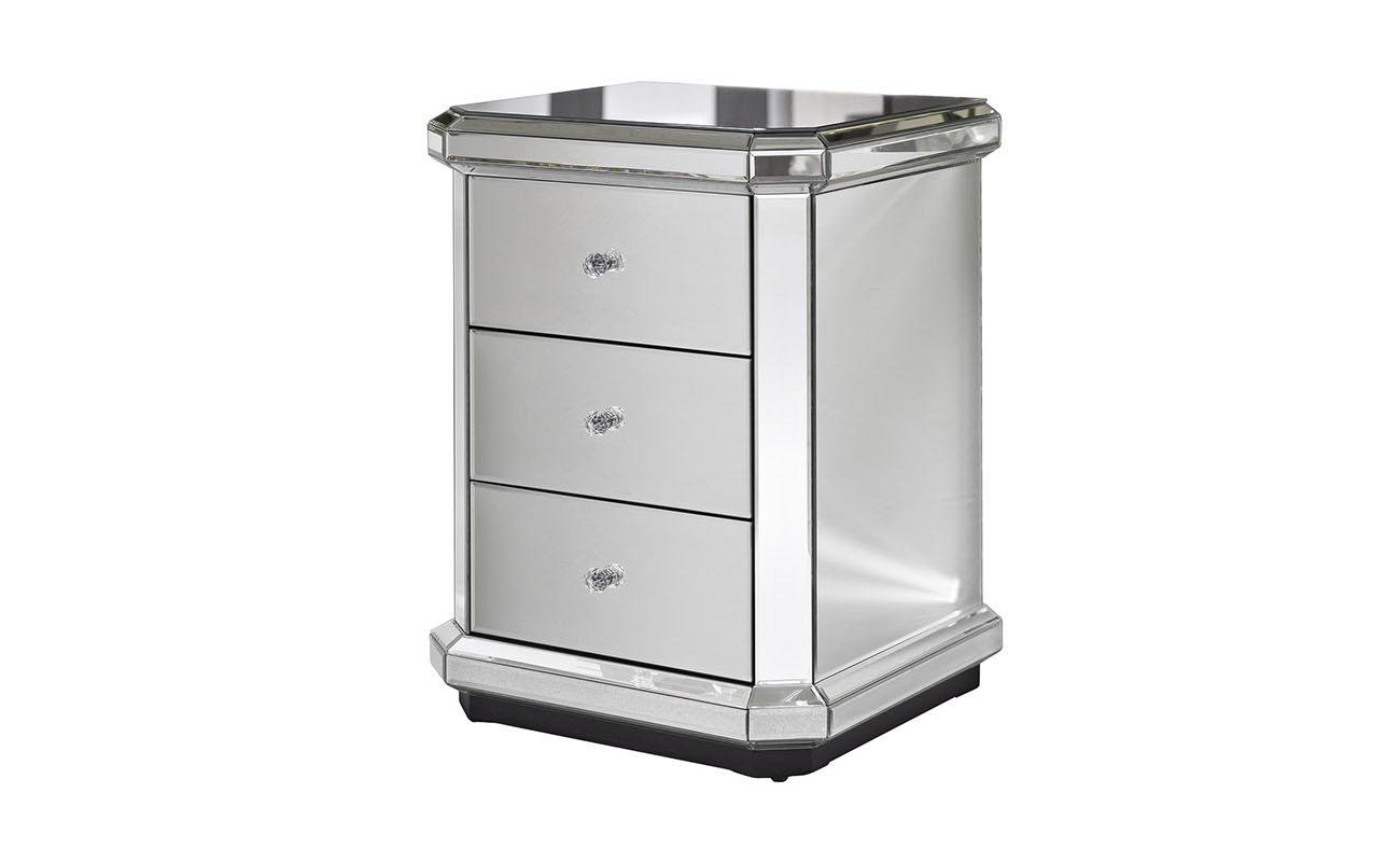Сдержанная по форме, но эффектная в исполнении зеркальная тумбочка — выбор покупателей с воображением и художественным вкусом. Отражающая поверхность взаимодействует с окружающими предметами, создавая необычный акцент в интерьере. Три вместительных ящика предназначены для хранения самых разных вещей: от косметики до белья. На фото зеркальная тумбочка смотрится просто изумительно, но в реальности она выглядит еще роскошнее. Красивые хрустальные ручки добавляют изысканности и шарма. Тумба прекрасно сочетается практически со всеми видами мебели и декора, а также различными вариантами текстиля.