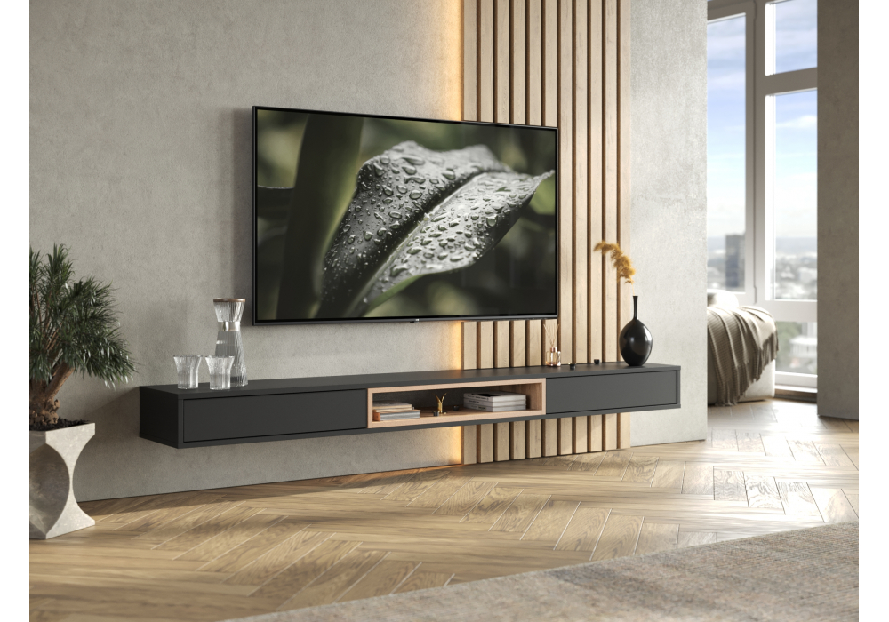 Купить "ТВ-тумба Woodville Делора 2,0 м черный / дуб вотан 674728"