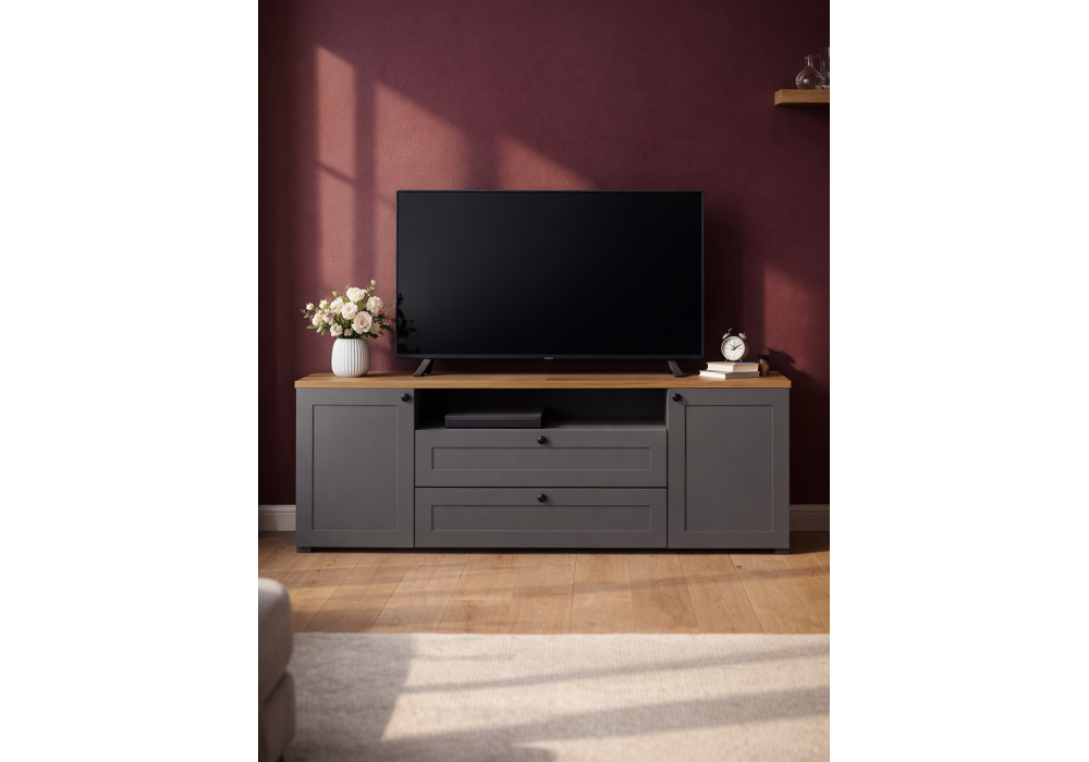Купить "ТВ-тумба Woodville Опра серый графит / дуб золотой craft 676803"