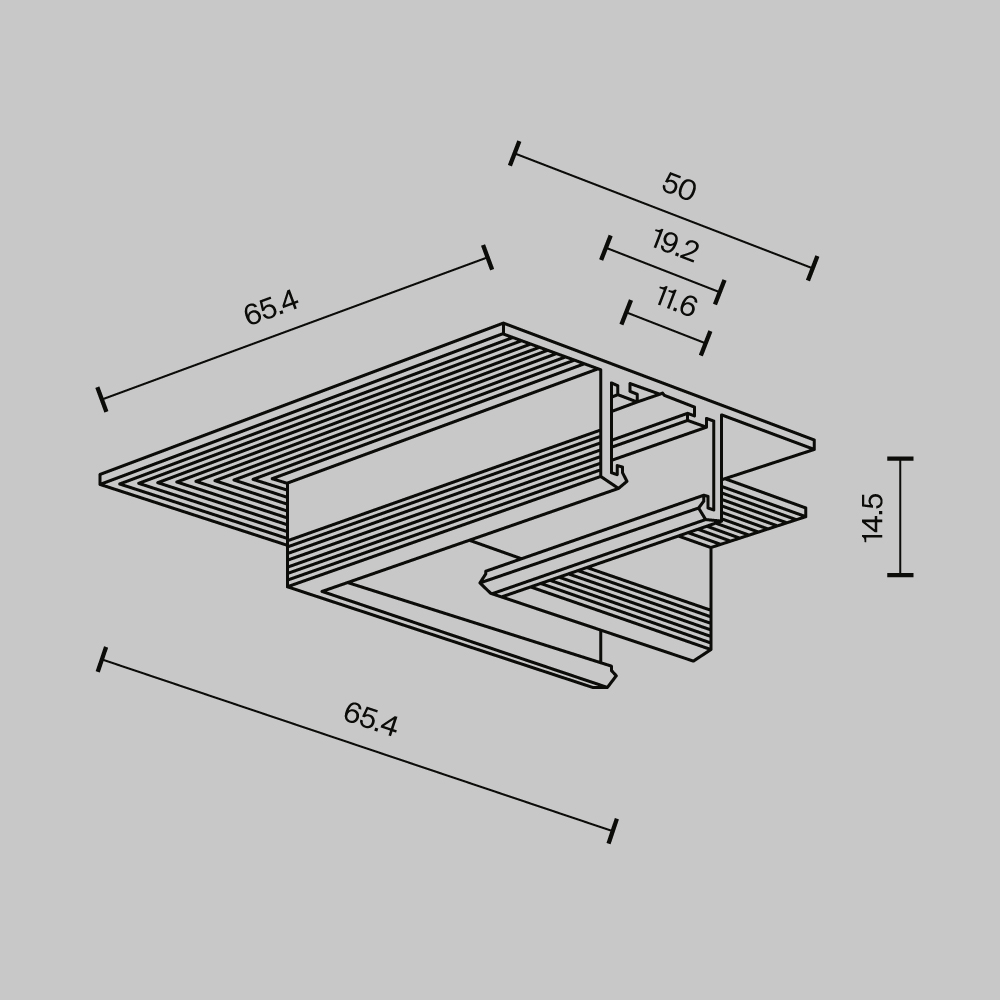 Комплектующие для монтажа: угловые коннекторы (накладные и встраиваемые), соединители, вводы питания, заглушки, декоративные накладки и антибликовые фильтры. Угловые коннекторы создают ровные углы 90° без запила шинопровода. Все элементы в черном цвете, без видимых проводов. Напряжение DC 48V. Гарантия 2 года.