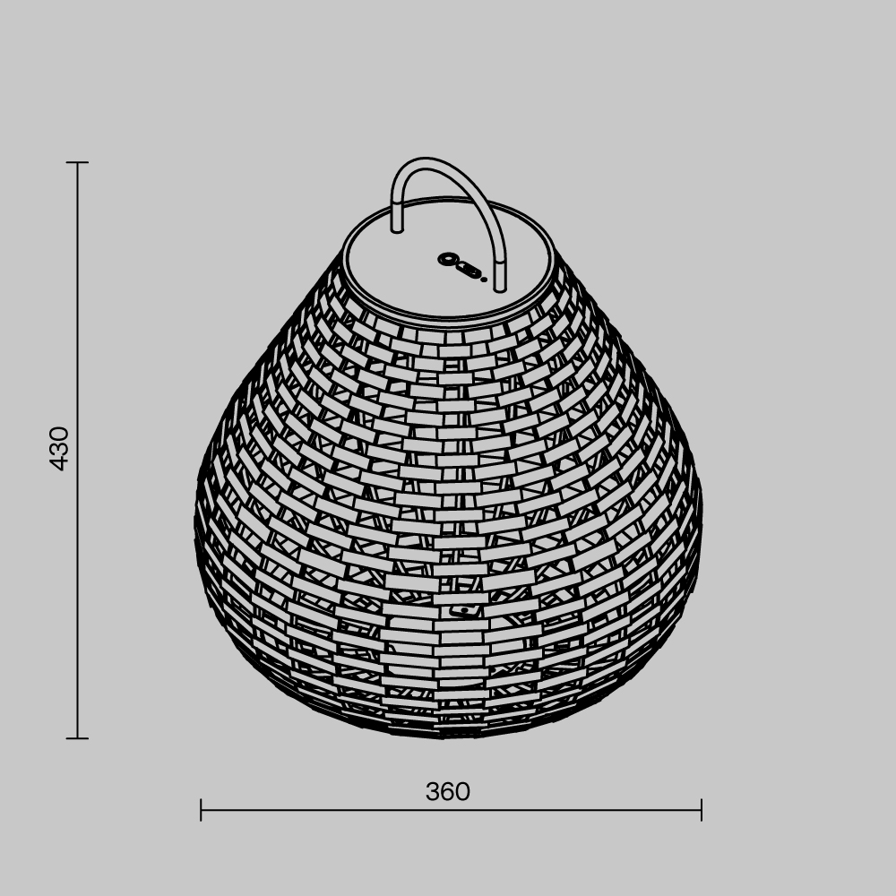 Материал арматуры - ротанг. LED-источник света, мощность 5W, световой поток 150 Lm, цветовая температура 3000K, CRI 90, угол рассеивания 120°, IP54.Ландшафтный светильник в виде плетеной корзины.