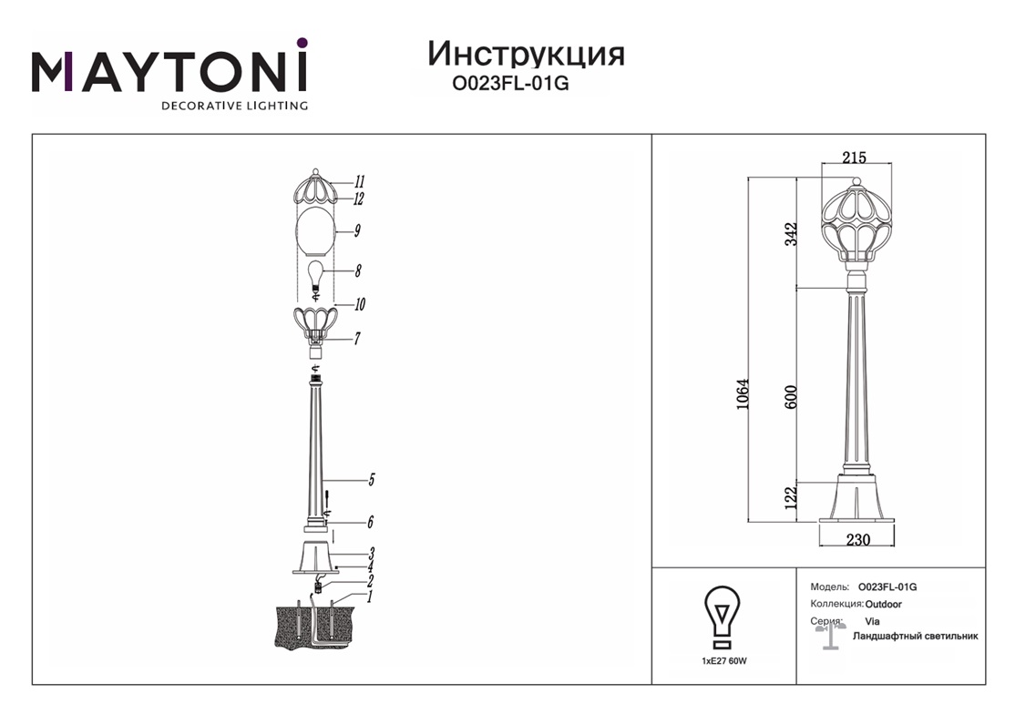 Купить "Уличный светильник Maytoni Via O023FL-01G"