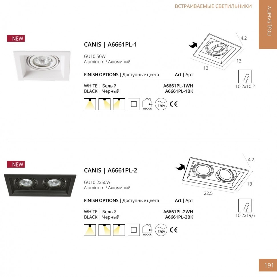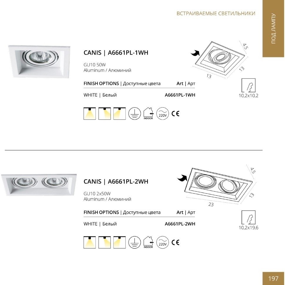 Встраиваемый светильник Arte Lamp A6661PL-2WH в Краснодаре