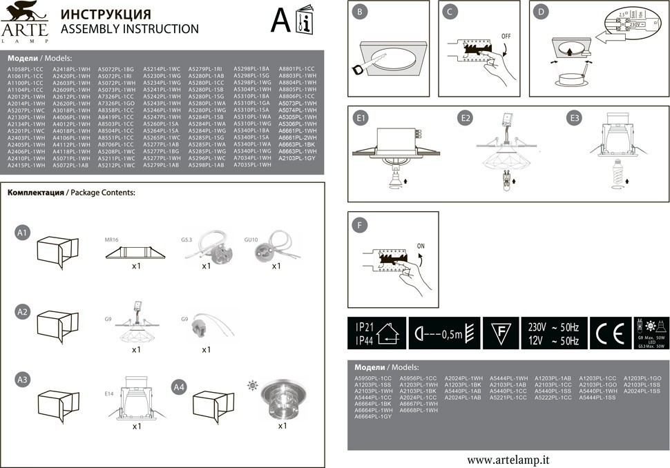 - Дополнительная информация: Диммируется, (при покупке диммируемых ламп)