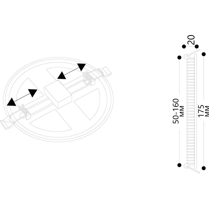 - Способ крепления: Распорная пружина