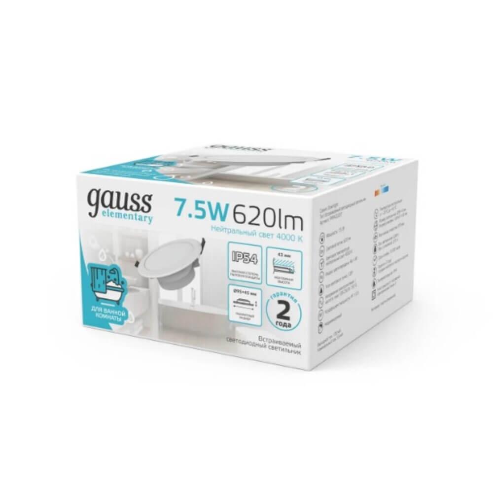 Купить "Встраиваемый светодиодный светильник Gauss Elementary Downlight 999420207"