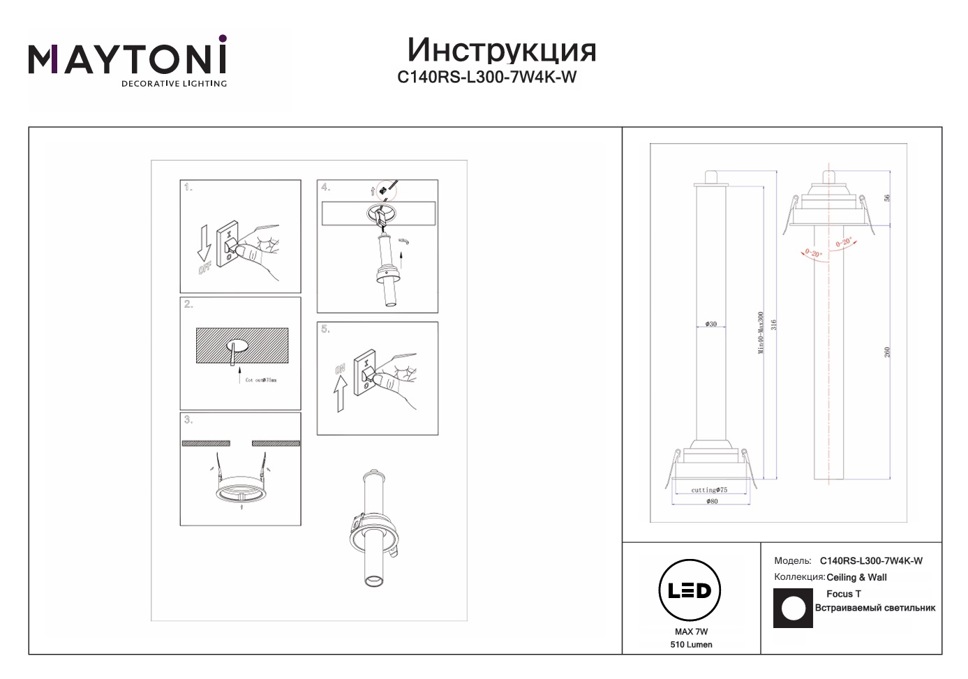 Все характеристики C140RS-L300-7W4K-W